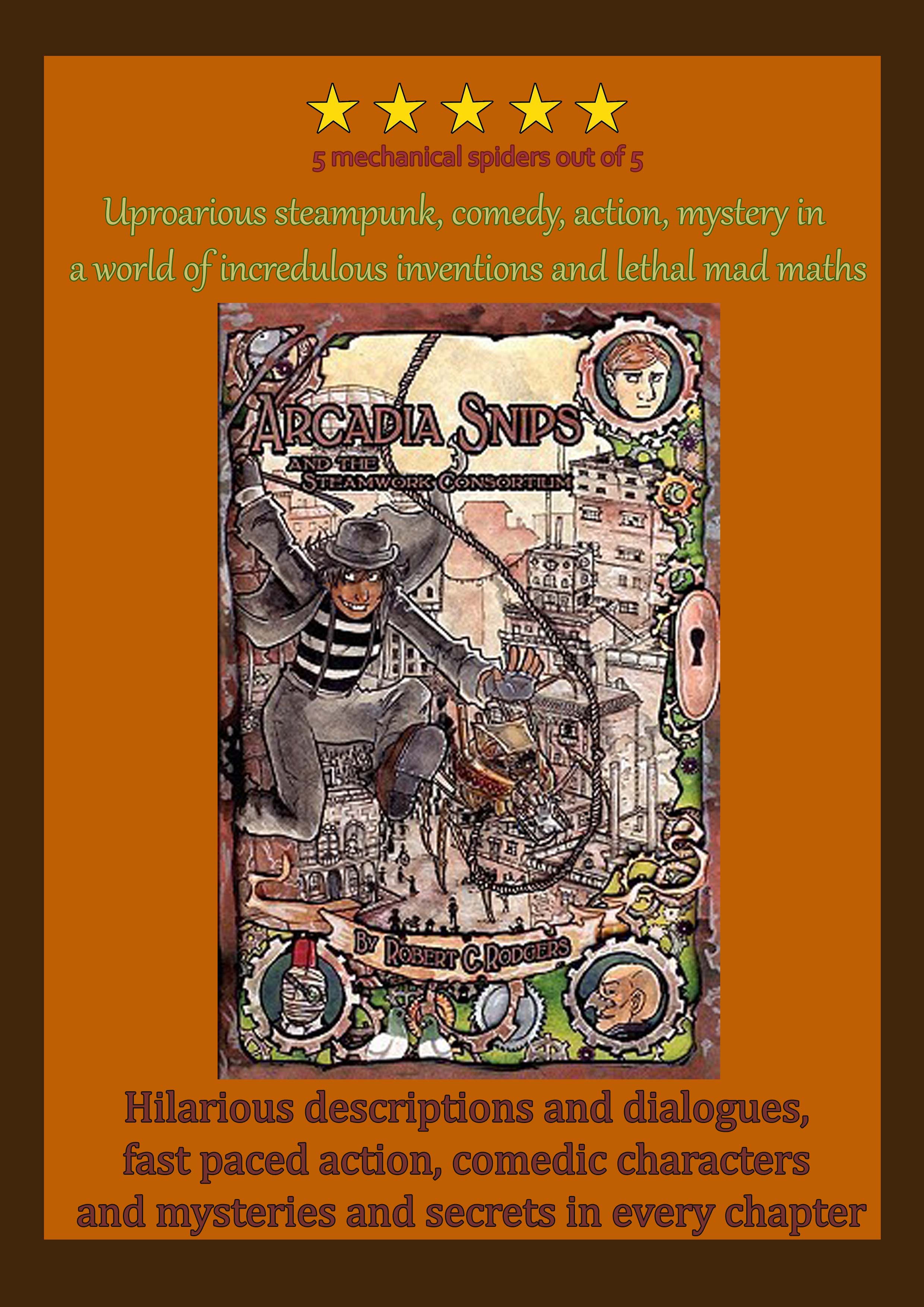 What happens when pigs fly? What did William’s parents do? Just how dangerous is mad science? And what exactly is the Steamwork? The answers to all these questions await in Arcadia Snips and the Steamwork Consortium.
