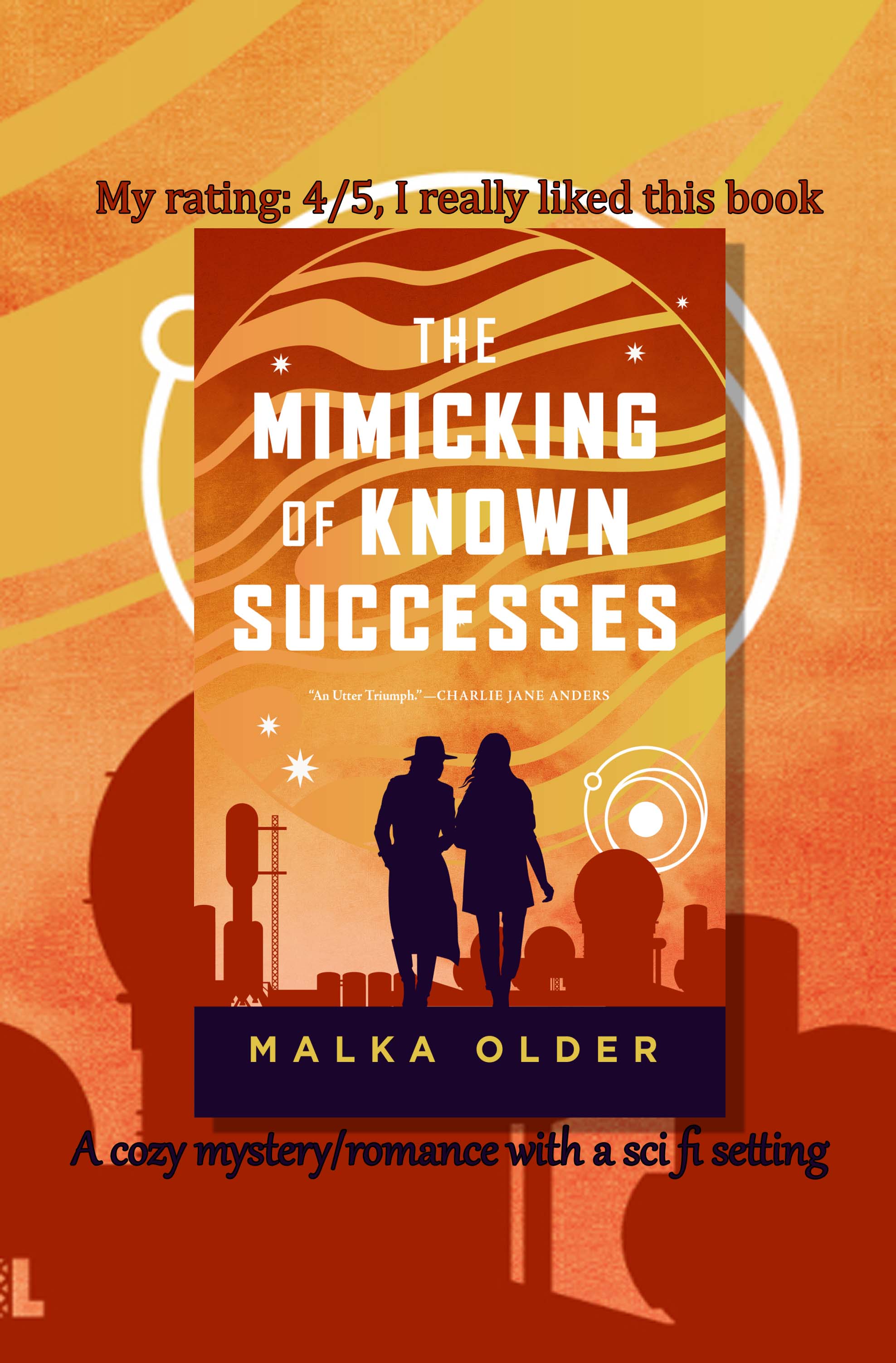 A cozy mystery in space. This book is not a sci fi story that includes a murder, it is a mystery that includes a sci fi setting, and a mystery focussing on the relationship between Mossa and Pleiti. It is a portrait of a brilliant investigator, seen through the admiring eyes of an ex girlfriend who still has warm feelings for her former lover, and it is a mystery with a gentle but persistent reminder of the price the planet has to pay for human greed and industry.